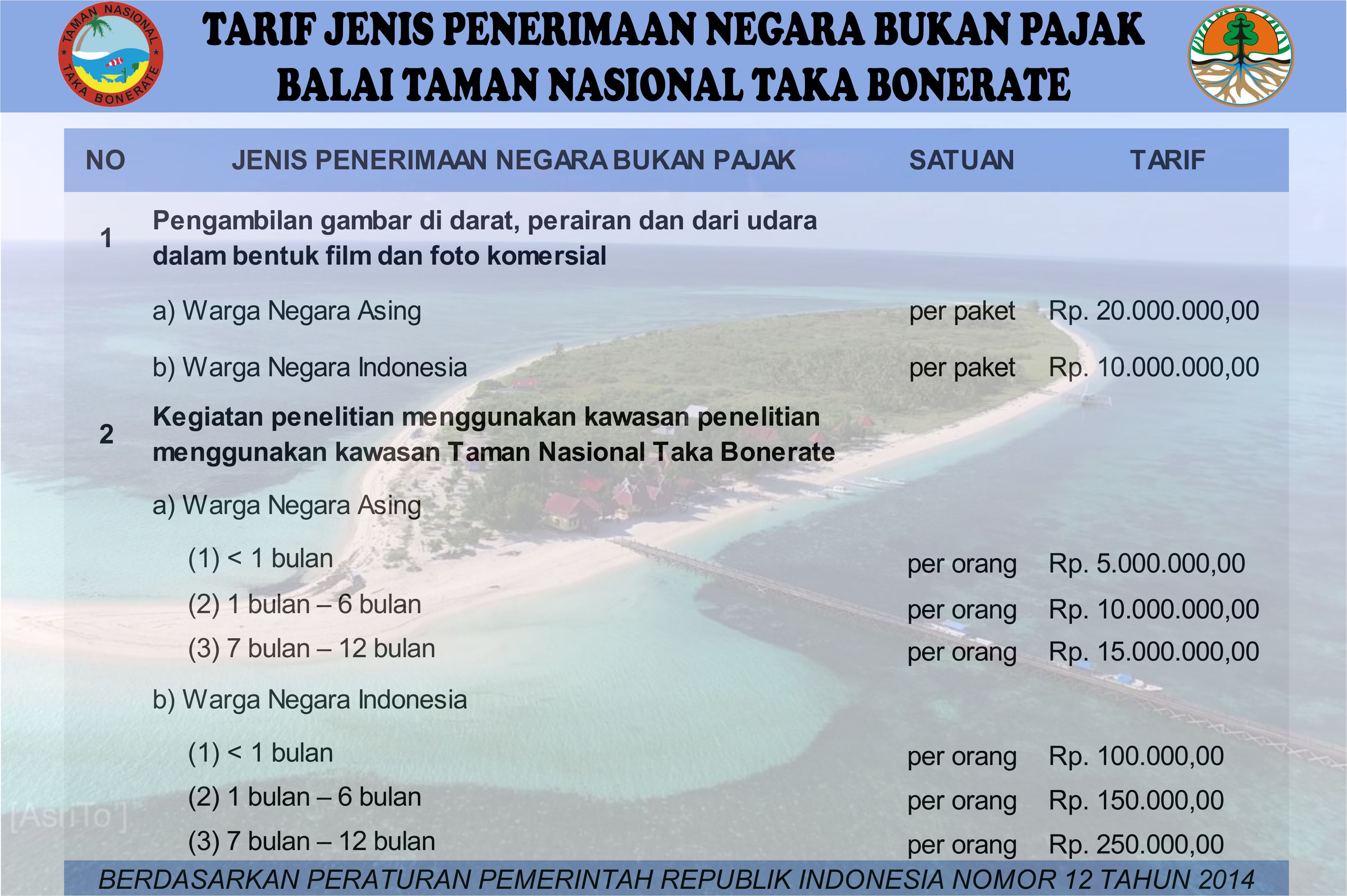 - Pemohon WNA atau untuk kepentingan asing (Silahkan hubungi Kantor Balai Taman Nasional Taka Bonerate)